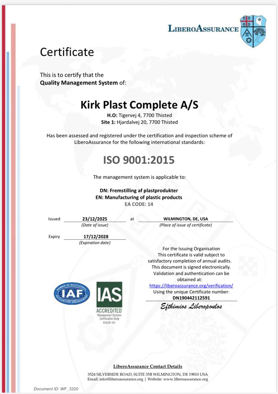 Celebrating ISO 9001 Certification: Congratulations to Kirk Plast Complete