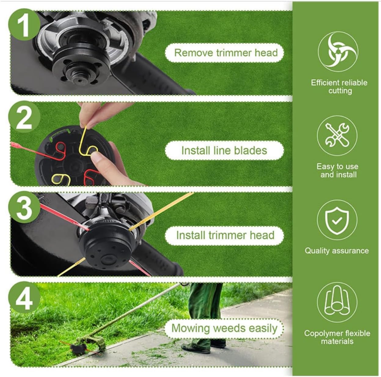 This part is a non original compatible spare part, and the manufacturer's name and part number are for reference only. Please note If there are errors during the installation and replacement of this product, resulting in damage or inability to use our product, we offer a one month refund. Your satisfaction is always our highest pursuit! We accept bulk product orders Product Description For Aero-Flex Premium Replacement Flexible Line Blades for Trimmers Edgers 1、Color: Yellow + red 60 for each 120 * Premium Replacement Flexible Line Blades