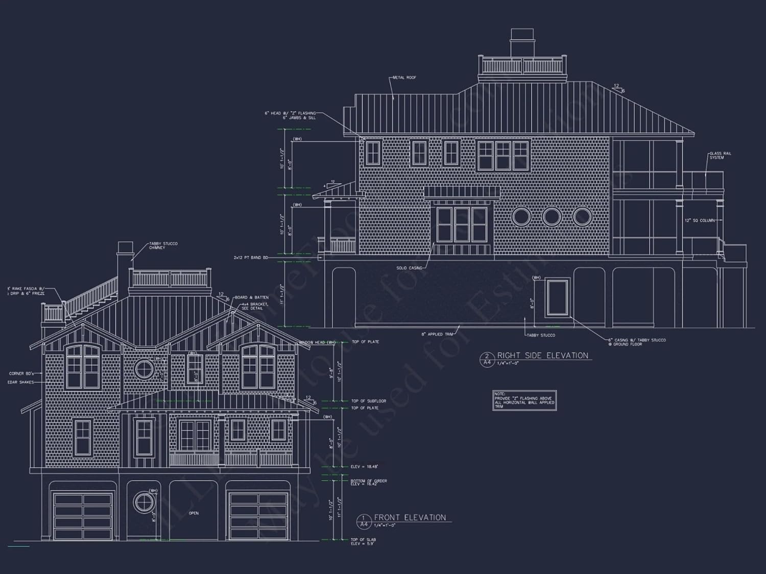 Width: 44′-0″Depth: 70′-8″Htd SF: 4,372Unhtd SF: 1,255Coastal House Floor Plan with CAD Blueprints & Elegant Outdoor LivingExplore this stunning coastal-style house floor plan with 4,372 heated sq. ft., 2 stories, breezeway, elevator, and CAD blueprints—perfect for narrow lots and ocean-inspired living.This coastal-inspired house plan offers a perfect mix of comfort and functionality. Designed for modern living, it delivers timeless charm and smart space planning.Key Features of the Home PlanLiving Areas - Heated & UnheatedHeated area: 4,372 sq. ft. spread across two well-designed stories.Unheated extras: Covered porches, a breezeway, garage bays, and a balcony for year-round enjoyment.Bedrooms & Bathrooms4 spacious bedrooms including a luxurious first-floor Owner Suite with private bath and walk-in closet.4 full bathrooms designed for comfort, privacy, and easy access.Interior HighlightsBeamed ceilings and architectural trim details for added character.Open floor plan connects kitchen, dining, and living areas. View open layouts.Kitchen island, walk-in pantry, and breakfast nook offer everyday ease.Dedicated home office and bonus flex room ideal for remote work or hobbies.Garage & Storage DetailsGarage Bays: 3-car garage with generous storage space.Garage Type: Attached with breezeway connection for added functionality.Storage: Multiple closets, built-in shelving, and attic potential.Outdoor Living FeaturesCovered front and rear porches for coastal breezes and relaxing evenings.Lanai and balcony spaces that blend seamlessly with the architectural style.Shingles, brick, and stucco siding for a weather-ready, beautiful finish.Architectural Style: CoastalThis design blends timeless materials and thoughtful details—perfect for families who value character and efficiency in one package. Learn more about the Coastal House Plan style or explore similar styles on ArchDaily.Bonus