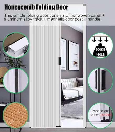 Transform your living space with our versatile accordion door, perfect for enhancing functionality and style in various areas such as living rooms, bedrooms, kitchens, and study rooms. This modern folding door not only acts as a practical room divider but also adds a touch of elegance to your home decor. Its innovative space-saving design allows the door to neatly fold away when not in use, freeing up valuable space in your home. Crafted from durable nonwoven material and aluminum alloy, our accordion door offers both durability and aesthetic appeal. With customizable widths ranging from 20 inches to 90 inches and a standard height of 80 inches, it fits perfectly in any opening. The low track design minimizes tripping hazards, making it ideal for high-traffic areas. Key features include: - A stylish design that complements any interior style. - An efficient space-saving solution, occupying only 10% of the space compared to traditional doors. - A practical way to keep pets, especially dogs and cats, contained in designated areas. - Perfect for dividing rooms or enhancing the overall aesthetic of your space. - An excellent choice for narrow areas where traditional doors are impractical, such as at the top of stairs or in bathrooms. - In kitchens, it effectively contains oil fumes while maintaining the decor's integrity. In bathrooms, it maximizes space and functionality. Your package includes one accordion door along with all necessary hardware for easy installation. Please note that product dimensions are manually measured, and a slight margin of error may occur. Color variations may also exist due to lighting and screen differences. Elevate your home’s functionality and style today with our accordion door!