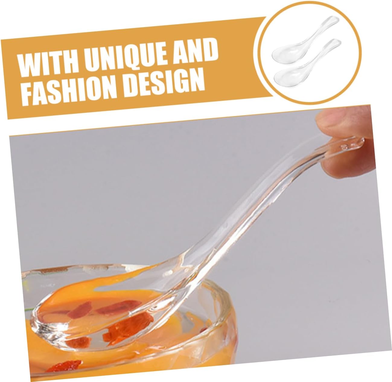 Package List 6 x spoons Characteristics -Material:Glass kitchen essentials -Color:Transparent glass dessert spoons -Size:13.50X5.00X4.00cm/5.31X1.97X1.57in glass soup spoons - Simple but elegant design makes the Glass Soup Spoon beautiful and unique. Widely used for soup, porridge, etc small soup spoons. - This Soup Spoon has a smooth surface, touch, very comfortable to use, and easy to clean porridge spoon. - craftsmanship and unique design are not only a kind of tableware, but also a kind of decoration restaurant spoon. - The spoons are versatile and can be used for a variety of dishes, making them suitable for both home and restaurant use kitchen accessories. - The capacity of the Spoon is reasonably designed to meet the daily needs of eating and drinking household soup spoons.Goods Descriptiontransparent glass spoons Designed with delicate surface and practical modeling, to its popularity and practicality, unique and lovely, can bring you a wonderful eating experience.kitchen accessories This is a Clear Soup Spoon, which is made of glass material, can be used for a longer term