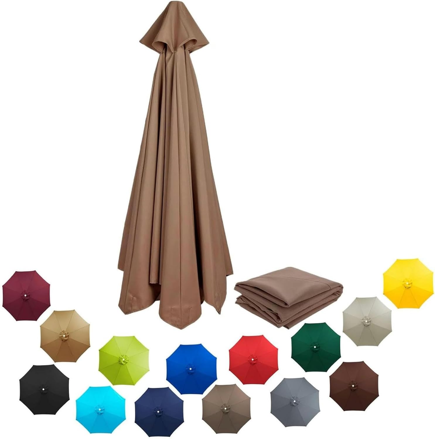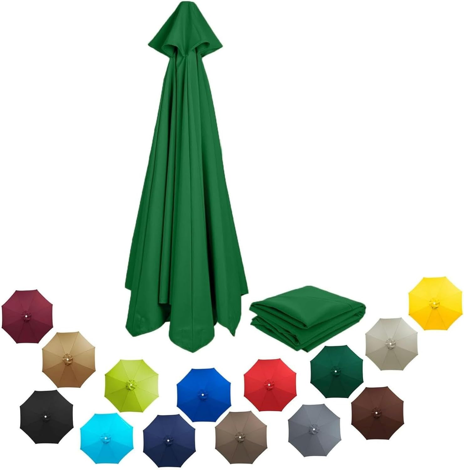 -Has your old parasol faded or torn? It's time to replace your sunshade umbrella,You will be glad to find that your yard umbrella can have a replacement cover, and there are so many colors to choose from.- Advantage in choosing us is that the umbrella fabric is exquisitely made, with perfect color, tight seams and good stitching, firm color, thick and durable. Having it will make your outdoor dining more enjoyable and enjoyable.-Name:Sun Umbrella Replacement Canopy -Replacement Canopy is applicable to: 6/8 rib Patio umbrella, Parasol Umbrella, Sun Umbrella, Garden Parasol Market Umbrella Canopy.-Fabric: High quality polyester fiber fabric, 95% UV protection-Canopy shape: circular.-Replacement Canopy diameter: 6.6FT/8.9FT/9.8FT (2.0m/2.7m/3.0m).-Kind reminder:Regarding color difference - due to differences in shooting environment, brightness, lighting, shooting equipment, and display, there may be slight differences between the image and the actual product. Please understand and refer to the actual product for accuracy.