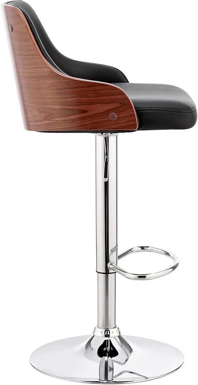 Reenergize your living area with the Asher Adjustable Black Faux Leather and Chrome Finish Bar Stool from Armen Living. The wide seat and back of the Asher are formed around an incredibly comfortable foam padded cushion - keeping you comfortable for as long as you're seated. The Asher is built with two amazing features in mind: a 360 degree swivel function and an adjustable height lever. Though an excellent fit for the kitchen or bar, the Asher's look makes it great for enhancing the aesthetic of just about any room in your house. The Asher is available in your color choice of gray, cream, or black faux leather with chrome finish or gray faux leather with black finish. Product Dimensions: W:19 x D:19 x H:33 - 41 x SH:24 - 33FeaturesSwivel Function: 360-degree smooth glide swivel allows you to change directions with easeAdjustable Height: Utilize the easy-to-use lever right below the seat to adjust to your preferred heightWeight Capacity: 250 lbsProduct Dimensions: W: 19 x D: 19 x H: 33: 41 x SH: 24: 33 x Weight: 18Comfortable Design: The soft foam-padded cushions offer extreme comfort, which helps to support and relax your back and bodyColor Preferences: A unique variety of color and finish options availableSimple Assembly: Clear step-by-step instructions ensure quick and easy setupQuality Assurance: Armen Living proudly provides 1-year limited manufacturer warranty for your peace of mindSeat Dimensions: Height: 24: 33 x Depth: 16 x Width: 17 x Back Width: 15 x Back Height: 12 x Leg Height: 21: 30 x Arm Height: 27: 35Dimensions:Bar StoolAssembled Product: 19 inches wide x 19 inches deep x 33 inches highSeat Width: 17 inchesSeat Depth: 16 inchesSeat Height: 24 inchesBack Height: 12 inchesArm Height: 27 inchesMax Height: 41 inchesMin Height: 33 inchesWeight Capacity: 250 poundsArmen Living leads in modern furniture design and manufacturing, providing end-to-end solutions globally. We exceed client expectations with speed and flexibility, delivering exceptional products with reliability and innovation. Based in Southern California, our distribution center serves retailers, designers, and hospitality providers worldwide. Offering a wide range of designs, including originals, we're a trusted resource for stylish modern furniture, committed to quality and customer satisfaction.
