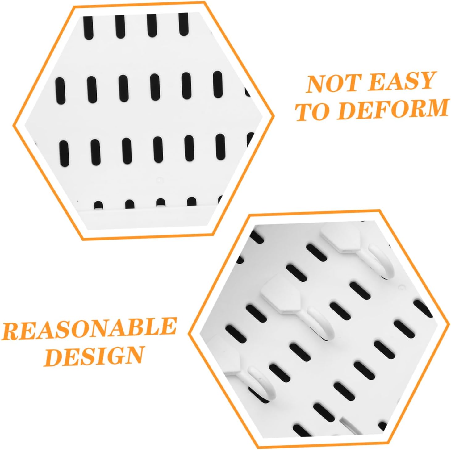 Package List 2 x Pegboards 1 x Storage Holder 2 x Shelves 5 x Hooks 2 x Big Hooks Features - Maximizes wall storage: The intelligently designed pegboard with shelves and hooks can maximize the utilization of wall space, offering enhanced storage capacity wall pegboard for home. - All-match style: The black pegboard is simple and modern, which is able to match well with of the home decoration styles door back pegboards. - Sturdy and dependable: Constructed with and strong plastic materials, it can support heavy objects with stability and reliability pegboard. -Color:White pegboard kit -Size:30.00X30.00X1.00cm/11.79X11.79X0.39in display pegboard for wall -Material:Plastic wall mount pegboard - Effortless installation: No drilling needed, ensuring a simple and convenient wall mounting process wall pegboard for office. - and functional: Ideal for organizing and storing various items in the kitchen, bathroom, and more craft room storage.Goods Descriptionwall mount pegboard It can be with hooks, storage boxes and shelf to use, you can DIY the wall storage organizer, suitable for bedroom, bathroom, living room, kitchen and other places, will not easy to fall and damage.pegboard wall organizer Made with plastic material, the pegboard storage holder is a and home accessory, which can make full use of the wall space