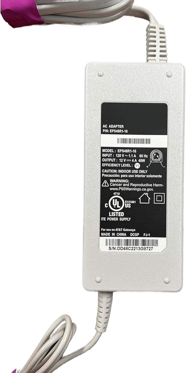 Buck's Replacement adapter for DirecTV AT&T Model EPS48R0-16 AC Adapter is a genuine OEM replacement power supply unit specifically designed for use with the AT&T Fiber Modem BGW-320 and other compatible devices. With a 12V-3.5A 48W output, this AC adapter provides reliable power to your device, ensuring that it operates at peak performance levels. This AC adapter is manufactured using high-quality materials and components, ensuring that it is durable and long-lasting. It is also designed to meet the stringent quality standards of AT&T, so you can be confident that it is a reliable and safe choice for powering your device. The DirecTV AT&T Model EPS48R0-16 AC Adapter is easy to use and install, with a plug-and-play design that requires no special tools or expertise. Simply connect the adapter to your device, plug it into an AC power outlet, and you're ready to go. In addition to its compatibility with the AT&T Fiber Modem BGW-320, this AC adapter is also suitable for use with other compatible devices. Its compact size and lightweight design make it easy to transport, so you can take it with you wherever you go. Overall, the DirecTV AT&T Model EPS48R0-16 AC Adapter is a reliable and high-quality power supply unit that is designed to provide stable and efficient power to your device. Its compatibility with a range of devices, ease of use, and durable construction make it an excellent choice for anyone in need of a replacement power supply unit.