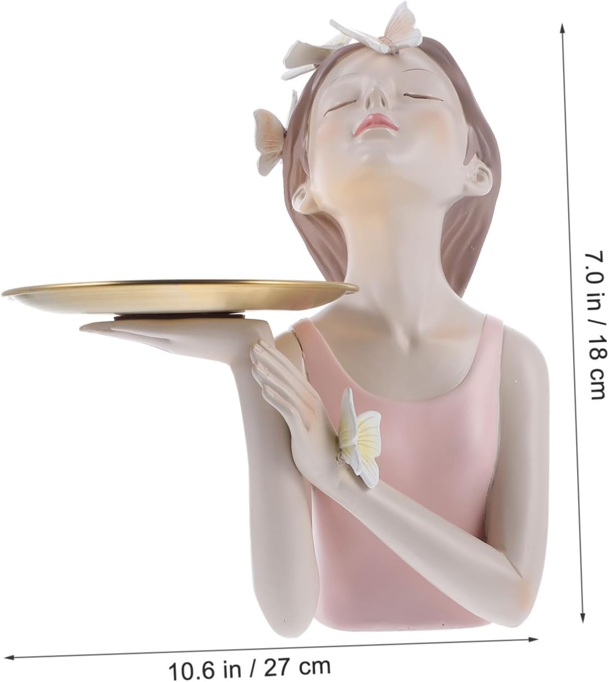 Package List 1 x Storage Adornment Characteristics - Color: Mainly pink Fruit Storage Holder. - Material: Synthetic resin Fruit Tray. - Size: 27.00X18.00X15.50cm/10.61X7.07X6.09inch Key - The design is reasonable and the storage range is wide. It can be used in fruit, key, coins, etc. It is made with excellent craftsmanship, and has an appearance and durable Necklace Tray. - It has a wide range of applications and is a choice for home decoration, office, porch, desk, and table decoration Key Tray Adornment. - The shape is creative, fashionable and beautiful, bringing you a more unique decorative style Resin Fruits Dish. - The vivid and interesting storage tray can easily bring you a mood Resin Key Tray. - It is made of , which is , durable and in texture Decorative Craft.Goods InformationGirl Craft Ornament It is a very decoration.Key Plate Made with excellent craftsmanship, it is vivid and lifelike, bright and beautiful, stable and practical, and can better meet your needs.Resin Key Tray It has a creative appearance design and storage performance, and can be used for storage of small objects such as keys.Key Organizer This is a beautiful, practical, and decorative tray
