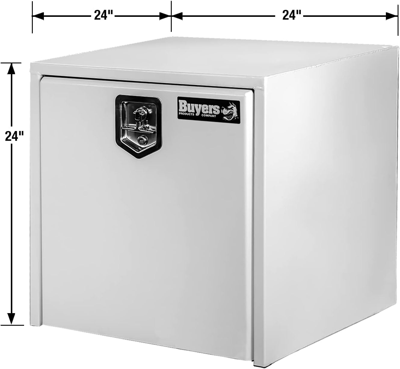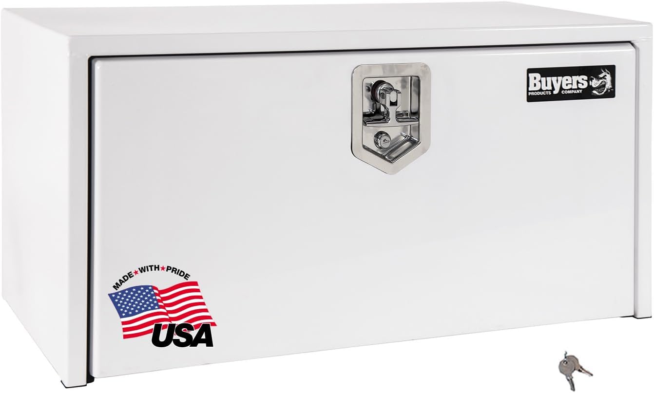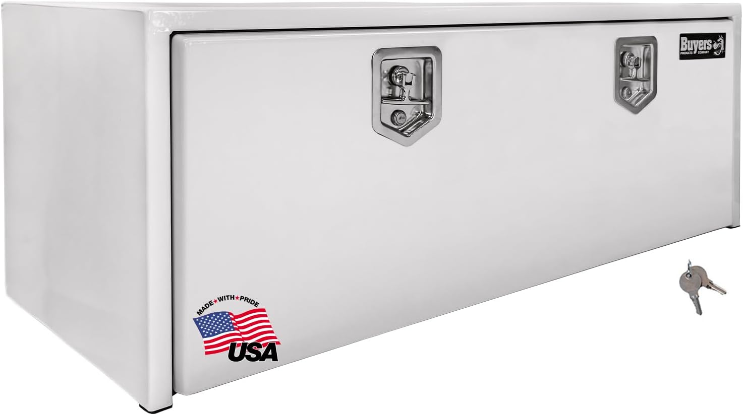 Keep your tools protected, organized, and easy to access with the Buyers Products White Steel Underbody Truck Tool Box. Designed for professionals who demand quality on the job, this truck box combines rugged strength with superior weather resistance. The 14 Ga steel body is built to endure harsh worksite conditions without bending or warping. A durable white powder-coated finish—applied both inside and out—provides long-lasting corrosion protection and a clean, professional appearance. Security comes standard with a locking stainless steel compression latch, delivering a tight seal to deter theft and protect against water intrusion. The recessed drop door opens smoothly on aircraft-grade support cables, while the continuous hidden hinge and replaceable gasket system keep dirt, moisture, and grime out. Whether you're upfitting a fleet or upgrading a single work truck, this box mounts to any flat surface—or underneath your truck with optional mounting brackets (sold separately). Proudly Made in the USA, it’s the perfect fit for contractors, installers, fleet managers, and serious tradespeople who expect dependable gear that gets the job done.