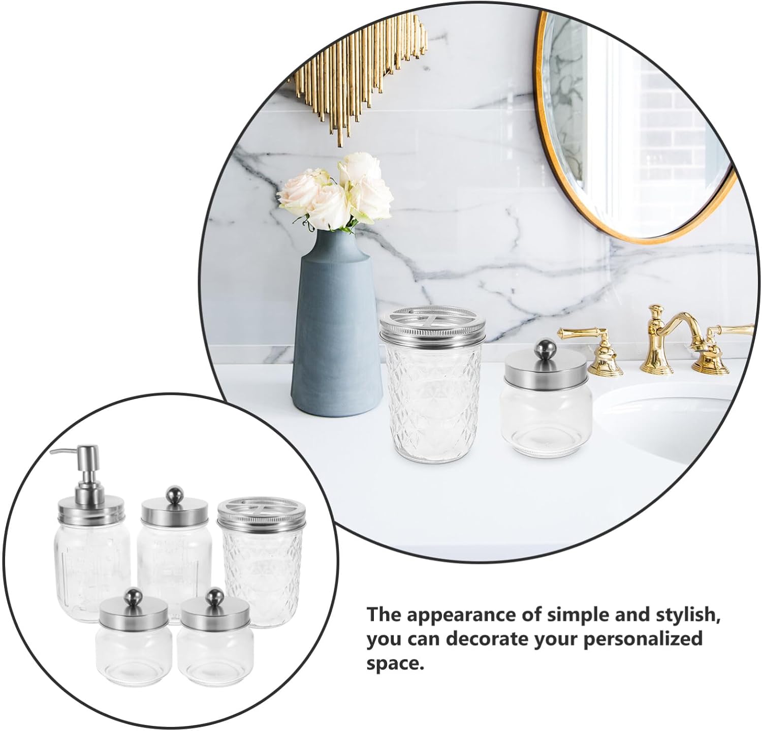 DescriptionThis is a bathroom personal washing accessories, which is made of stable material for durable use, not easy to deform or break. Simple structure and smooth surface. Fine workmanship and beautiful appearance, can ensure the popularity.Features-Color:As Shown-Material:Glass, ABS, stainless steel-Size:12.70X8.50X8.50cm/4.99X3.34X3.34in-Size:12.00X8.50X8.50cm/4.72X3.34X3.34in-Size:10.00X8.00X8.00cm/3.93X3.14X3.14in-It's a good for your lovers, family, friends, wedding or a house warming, add life to the bathroom with this bathroom vanity countertop accessories set.-Bathroom accessories set great as a stylish way to keep your bathroom essentials in one convenient place.-This Bathroom Accessories Set will be a for your lover, family, friends and colleagues.-Small size and portable, convenient to carry and store. Simple and classic appearance.-This set of bath countertop accessory can meet your essential demands, convenient to use.Package Including1 x Toothbrush Holder Jar1 x Soap Dispenser Jar3 x Cotton Swabs Jar