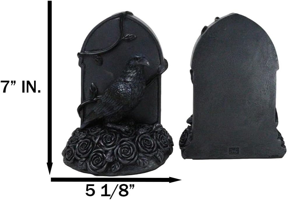 Ebros Gift Harbinger of Doom Bad Omens and Prophecy Raven Crow Perching On Black Roses and Graveyard Tombstone Pair of Bookends Statue Gothic Macabre Figurine As Halloween Decor