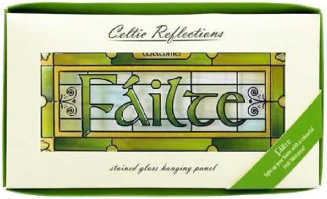 This fantastic decorative panel hanging is a great way to promote your Irish heritage. This beautiful decorative panel is made out of stained glass, a durable material, and is masterfully hand-painted with great attention to detail - it will keep the same appearance throughout time. This stained glass piece features the Irish greeting “Failte” which means “Welcome” and its 4 corners are embellished with the Shamrock motif. It is said that the three shamrock leaves were used as an example by Saint Patrick, to explain the Trinity concept to the pagan Irish, with each leaf representing the Father, the Son, and the Holy Spirit. The unique panel comes with a hook, making it easy to hang. It measures 3.7 x 8 inches and comes in a branded gift box. The Failte Panel with its Celtic detailings can be a great housewarming gift or just a decoration in your home that will remind you of your Irish roots.
