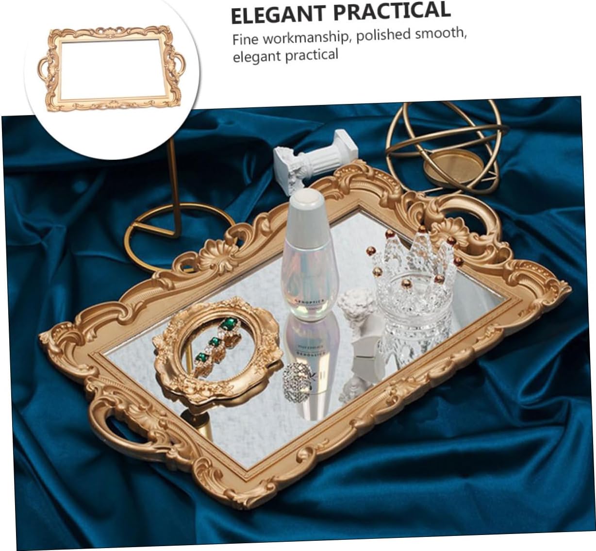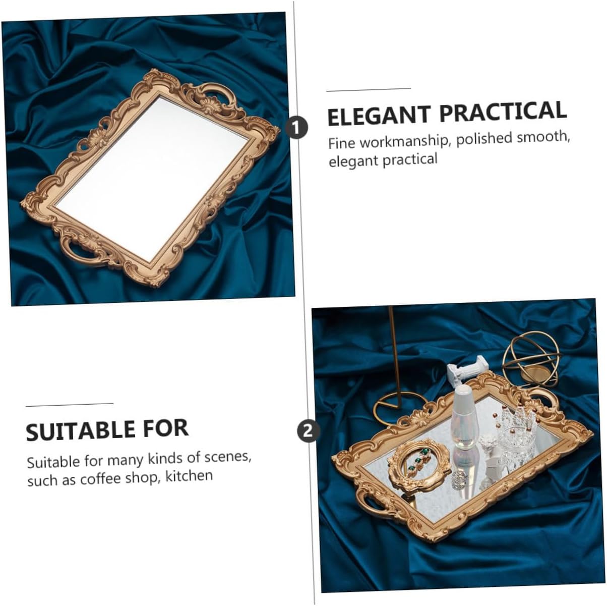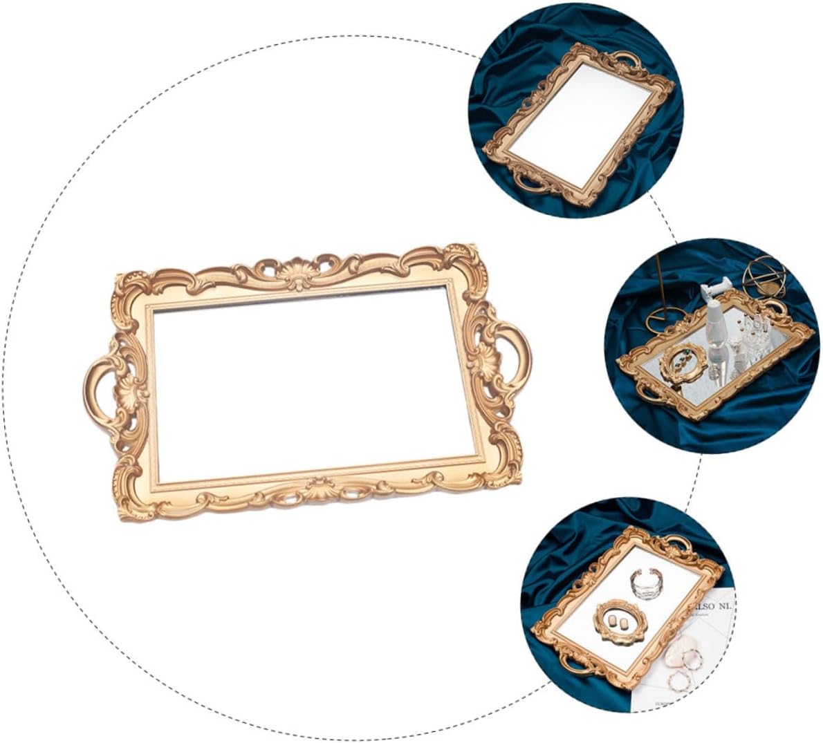 Package List 1 Features - Size: 39.00X24.00X2.00cm/15.33X9.43X0.79in - Material: plastic. - Color: golden. -Product Info:Mirror tray props - With fine craftsmanship, looks beautiful and elegant, a nice decor for your home Cosmetics Storage Tray. - and , it is and to use. - Great for displaying cake, dessert, fruit, candy, chocolate, pastry Perfume Storage Organizer. - Brand-new and of , good for you to store small items like cosmetic and jewelry Cosmetic Storage Tray. - Perfect for party, home, office and so on, etc Home Storage Plate.Goods InformationCosmetic Storage Tray This European retro mirror tray can hold many household things such as keys, fruit, phones, perfume, cosmetics and so on.Cosmetics Storage Plate Do you want to get a storage plate? If yes, here is .Home Storage Plate Made of , and practical