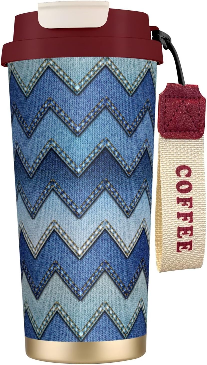 This Gradient Blue Denim Print travel Coffee Mug supports three drinking modes: the direct drink spout for quick drinks during commutes, the straw port for iced coffee and other spill prone beverages, and the open top design that replicates the traditional coffee cup experience. BPA Free 316 Stainless Steel, Safe and Durable Inner liner made of food grade 316 stainless steel, non toxic, odorless, BPA free, safe for long term use.