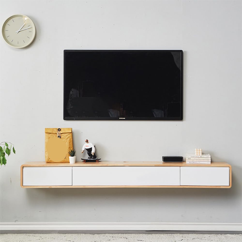 ✦✦Specifications ✦Information Category: Floating TV Stand Usage: Hotel, Bedroom, Living Room...... Style: Modern / Creative / Simple ✦Dimensions TV Console: 55"L x 9.5"W x 8"H ✦What's Included Number of Items Included: 1 Piece Assembly Tool: Yes Instruction Manual: Yes ✦Material and Colour Material: Wood(Rubber Wood) Color: Natural ✦Features Outdoor Use: No Shape: Rectangle Drawers Included: Drawers Included Number of Drawers: 2 Cabinets Included: Cabinet Included Number of Cabinets: 1 Level of Assembly: Partial Assembly Cable Management: Cable Management Included Load-bearing: 200kg Welcome to visit our store and buy our special designed and good quality products. If you have any questions about our products and service, please feel free to contact and we will always be here to assist.
