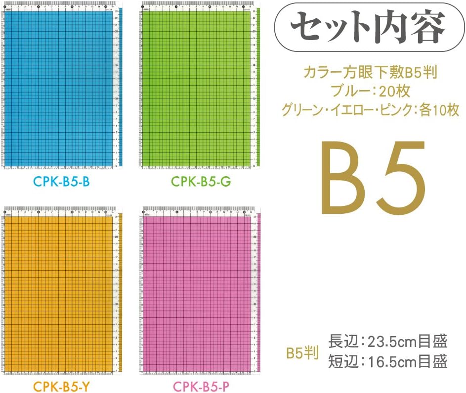 Color grid underlayment B5 set. 10 sheets each, 20 blue only. 0.2 inch (5 mm) grid type for writing lines and graphs. Graduations on all sides also function as a ruler.