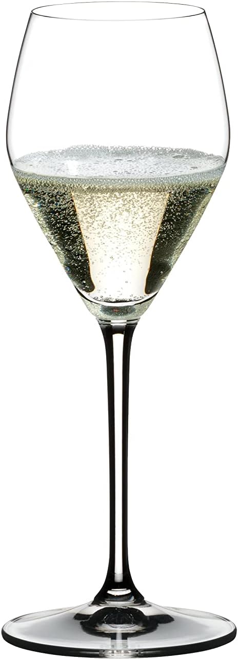 Riedel's 4X Prosecco Stemware boasts a gently curved bowl that accentuates the full bouquet complexity by highlighting its creamy texture.