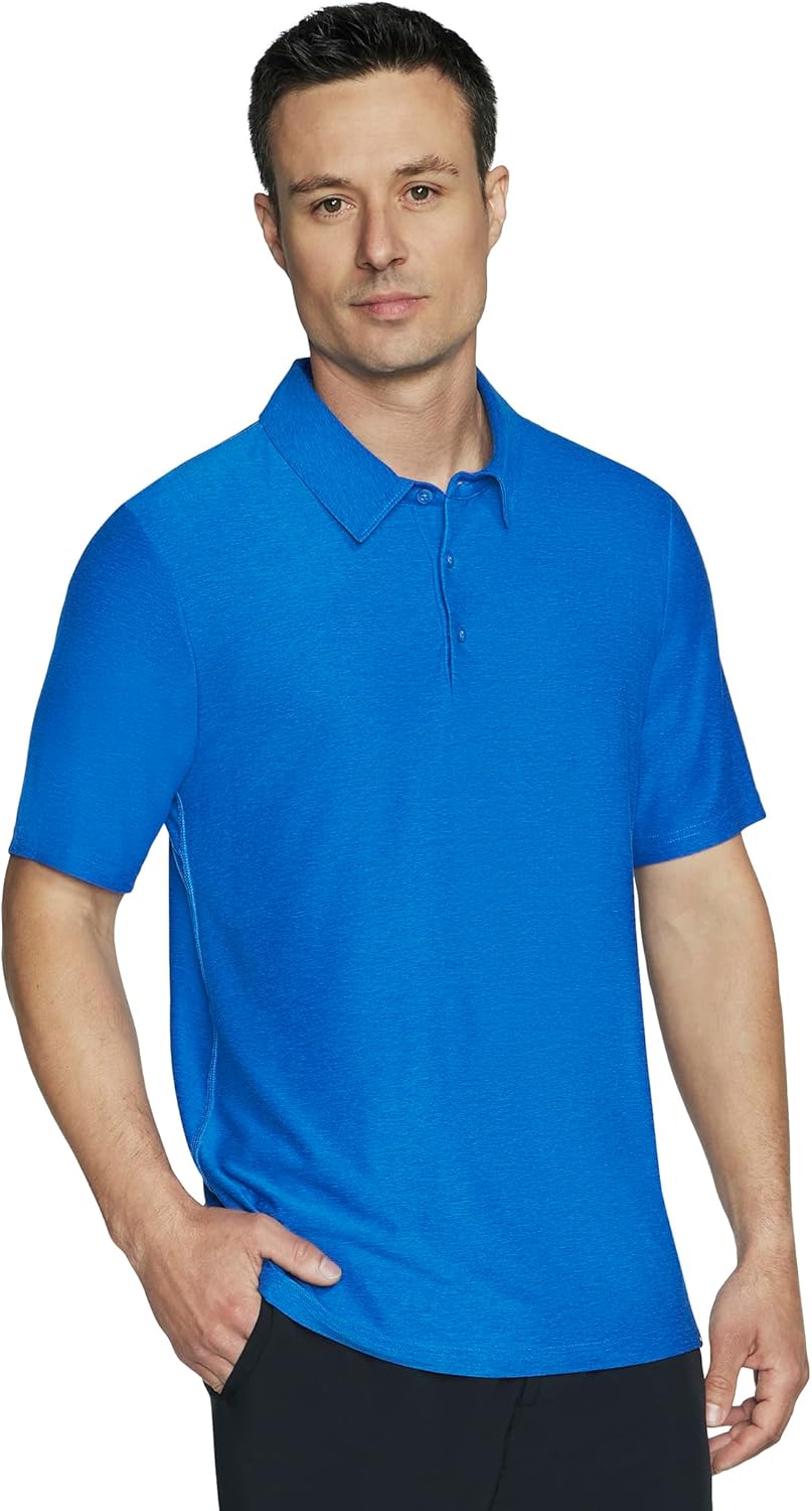 Good-natured comfort and style combine in the essential Skechers GO DRI All Day Polo. Designed with recycled materials, this polo features a soft lightweight GO DRI All Day jersey fabric, short sleeves, self-standing collar and a 3-button placket.