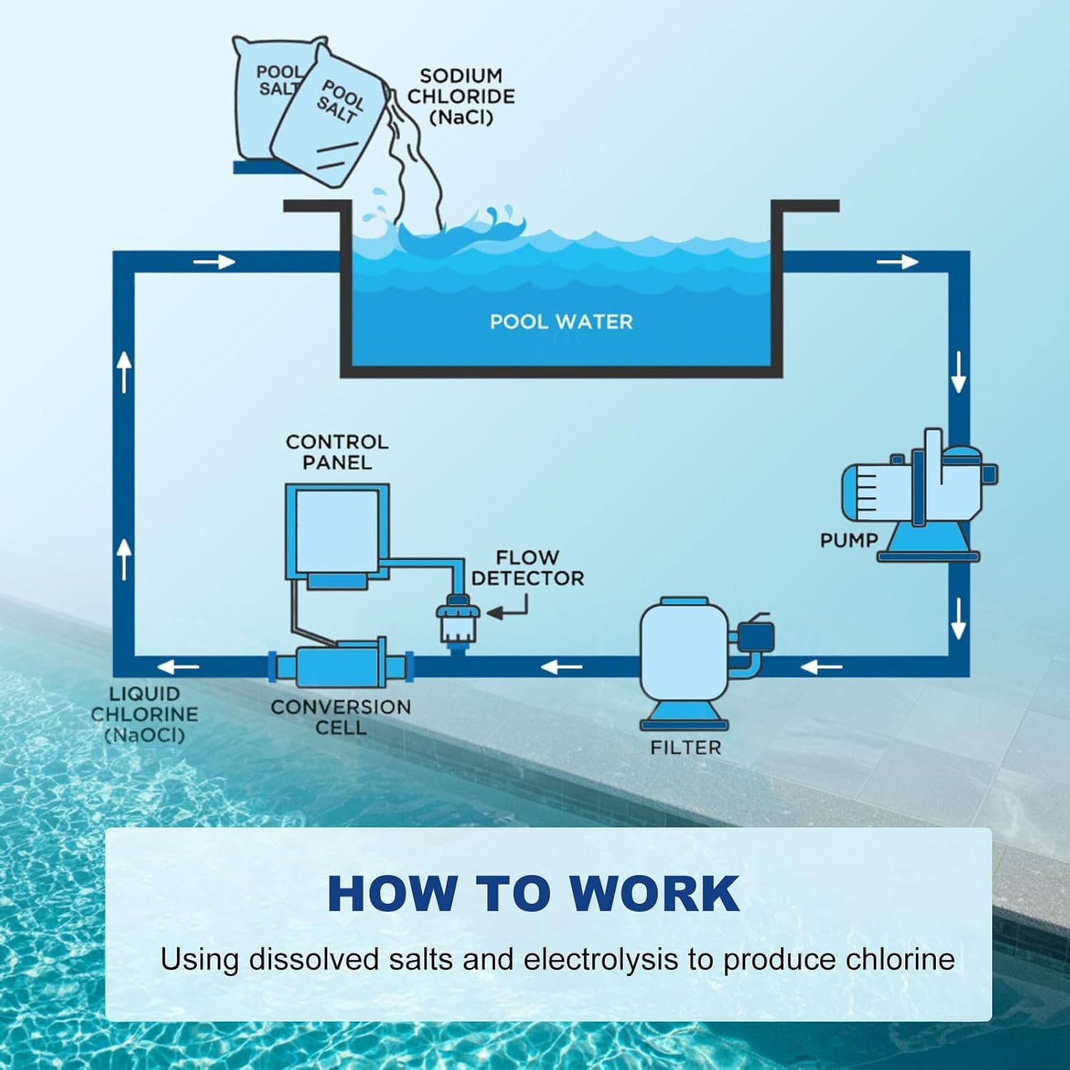 Product description YUEWO T-CELL-5 Salt Cell Water Chlorinator SystemUpgrade your pool maintenance with the ultimate hayward salt cell replacement solution. Engineered for in-ground pools up to 20,000 gallons, Fit For Hayward Turbo Cell Salt T5 / W3T-CELL-5 / GLX-CELL-5 compatible models, combines industrial-grade durability with smart automation. Core Advantages✅Precision CompatibilityCompatible with Hayward Aquarite models released after 2015 and SwimPure Plus, BioGuard Mineral Springs. Requires Software Revisions 1.5 or later. Not compatible with Aqua Logic, Aqua Plus, OmniLogic, or ProLogic. (Not compatible with aftermarket circuit boards). Verify your existing salt cell model for seamless integration.✅Cost-Efficient Chlorine ProductionAdvanced titanium electrolytic plates convert salt to chlorine 3X faster than standard cells, cutting chemical expenses by 50% while maintaining ideal chlorine levels. Provides odor-free water with 80% less eye and skin irritation. Integrated reverse polarity technology ensures a stable PH of 7.2–7.6.Max Chlorine Production: 2.1lbs/Day. 8000+ Hour Cell LifeFor horizontal mounting, we recommend a U-shaped installation for optimal performance and stability. If you have any questions about installation and use, please feel free to contact us and we will provide you with service.YUEWO is not affiliated with Hayard Industries Inc. The use of such trademarks herein is for informational purposesonly, and the goods are not those of Haward Industries Inc, but rather they are simply compatible with the referenced Hayward product. All manufacturers' names, brand names, trademarks, images, symbols, descriptions, and partnumbers are used herein for reference purposes only. Manufacturer Contact Information YUEWO