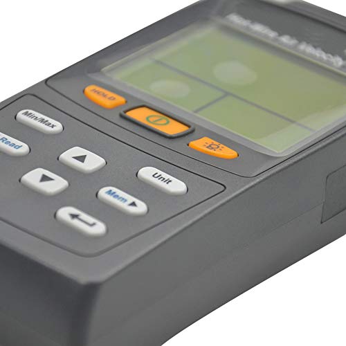 Description:1- Fast response telescoping probe.2- Air flow volume.3- Large LCD display.4- Displays air (wind) speed in meters/second,feet/minute, kilometers/hr, knots, and miles/hr.5- Displays maximum and minimum readings and holds any reading.6- Manual Data Memory and read fucntion (99 records).Application:1- HVAC system performance2- Commissioning3- Plant maintenanceSpecification:1- Size : 156 x73 x35 mm (L xW xH).2- Weight : 250g.3- Power: LR6 (AA) 1.5V x6 Batteried